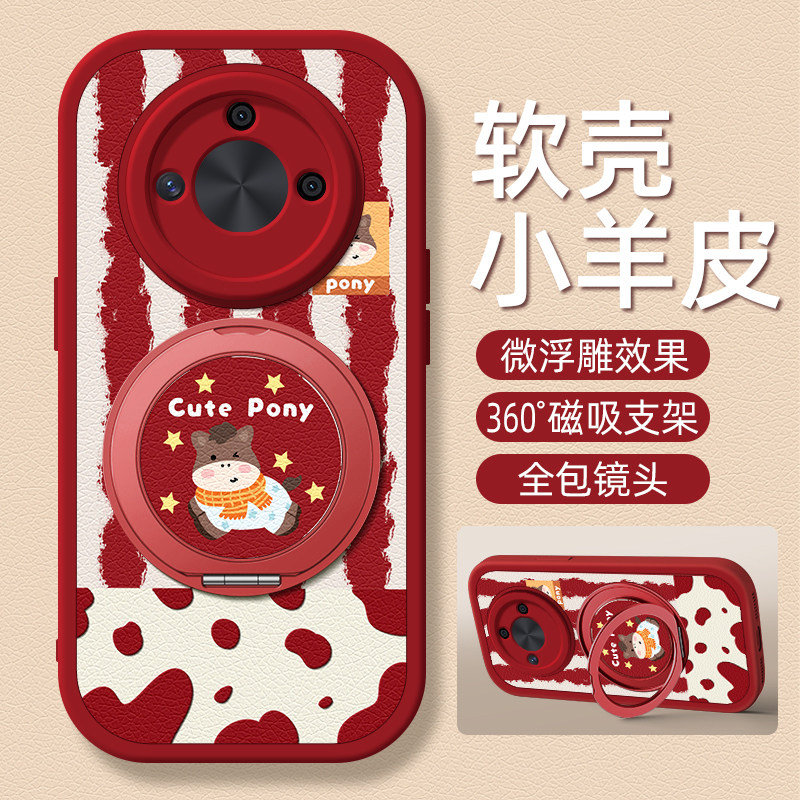 适用荣耀X70手机壳x60硅胶软x50/x40i小羊皮X30/x30i新款x50GT磁吸支架x20/x10女款9x卡通8x可爱2026马年豹纹