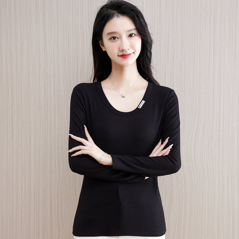 莫代尔低领黑色打底衫女春秋冬内搭2025新款U领长袖t恤女修身上衣