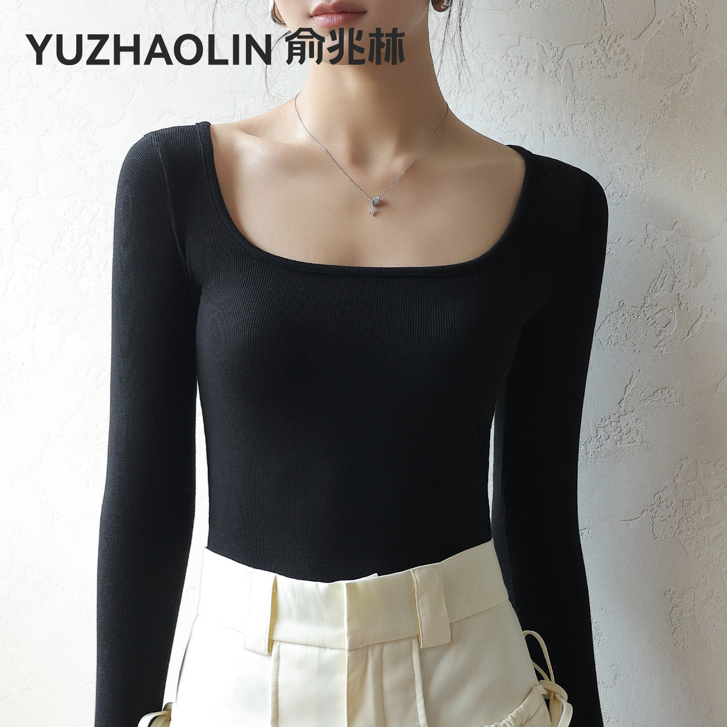 双u领打底衫中长袖黑色低领法式洋气紧身T恤女修身大领莫代尔上衣