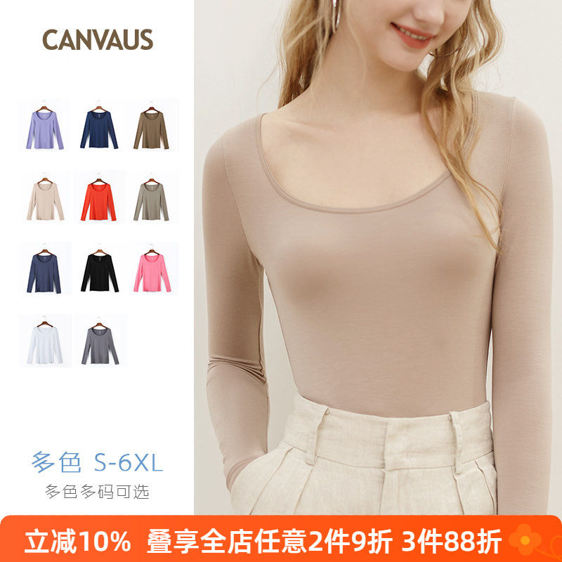 莫代尔打底衫女薄秋衣大圆领口黑色低领长袖内搭肤色贴身t恤上衣