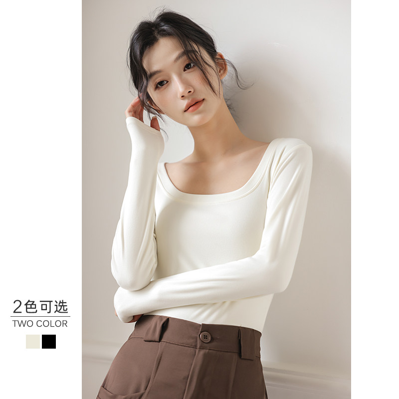 爆款莫代尔黑色低领打底衫女秋冬洋气内搭薄款U领长袖t恤修身面膜