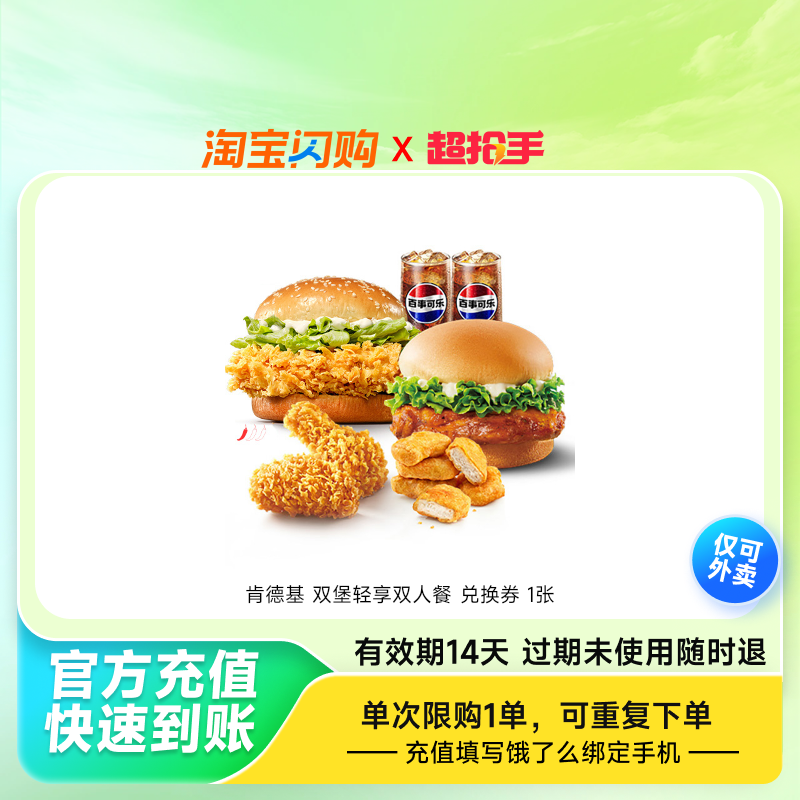 【下拉享补贴价】肯德基汉堡套餐多选1兑换券 饿了么闪购外卖券