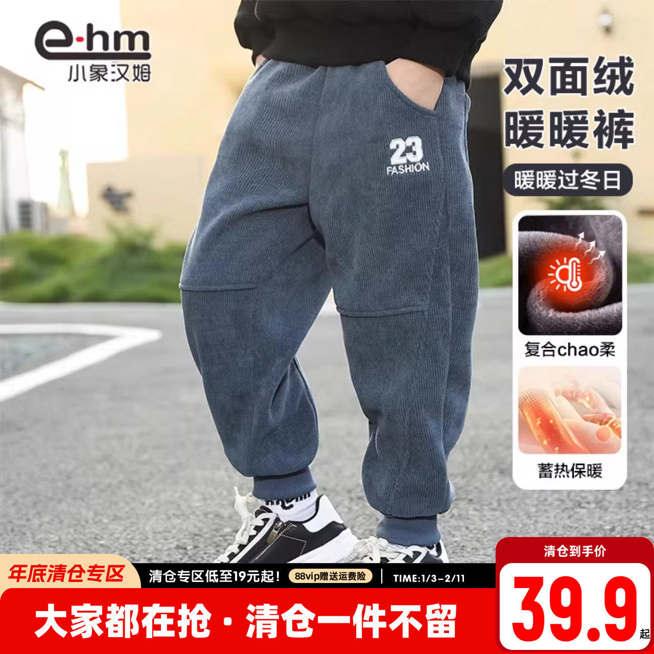 小象汉姆童装男童加绒运动裤冬儿童裤子新款2025冬中大童新款韩版