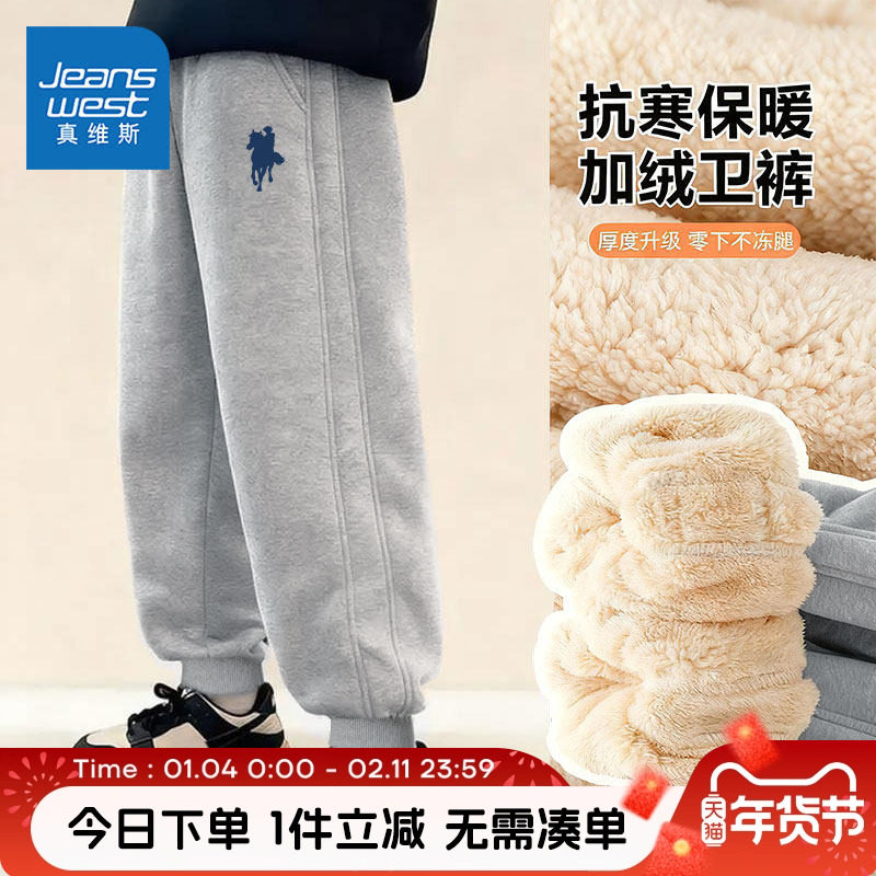 真维斯童装男童裤子秋冬款男大童2026新款加绒卫裤儿童运动裤冬装
