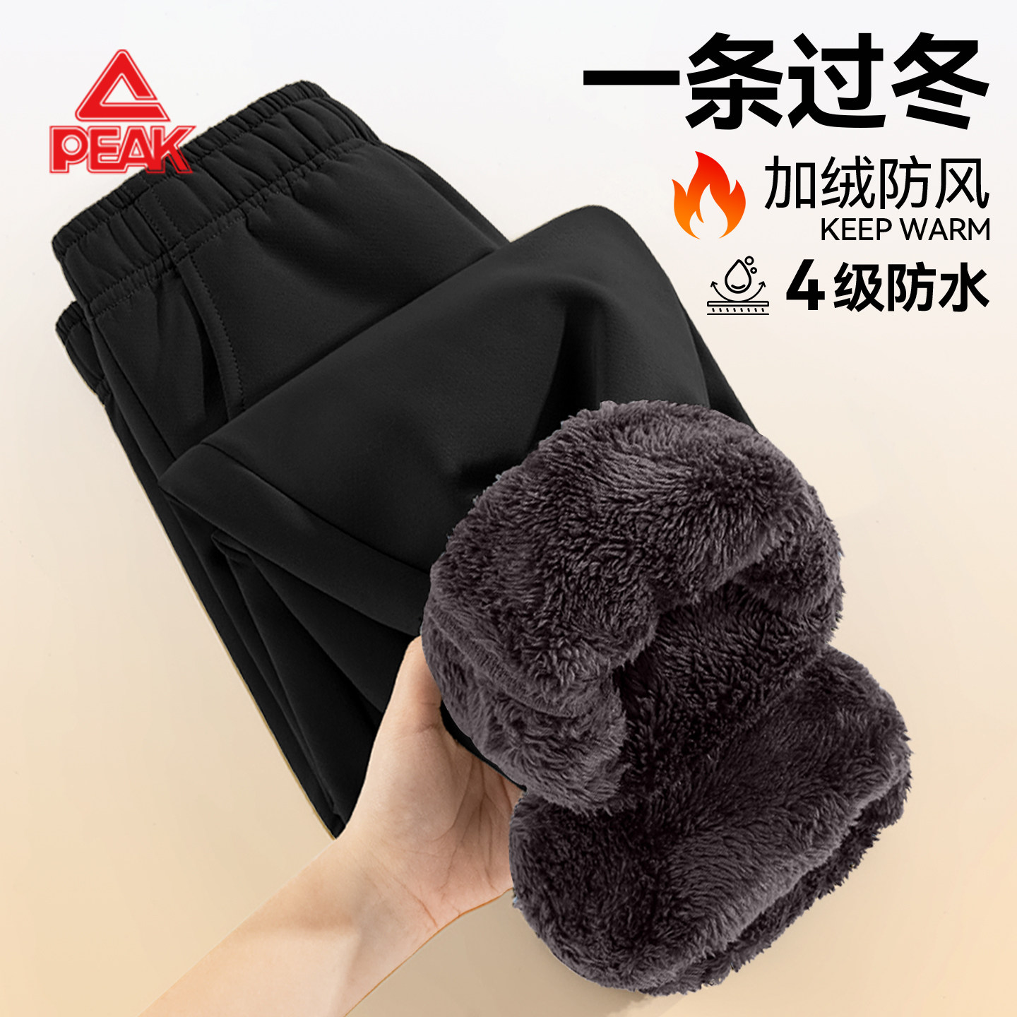 匹克童装男童加绒裤子保暖东北棉裤儿童防风大童黑色防水一条过冬