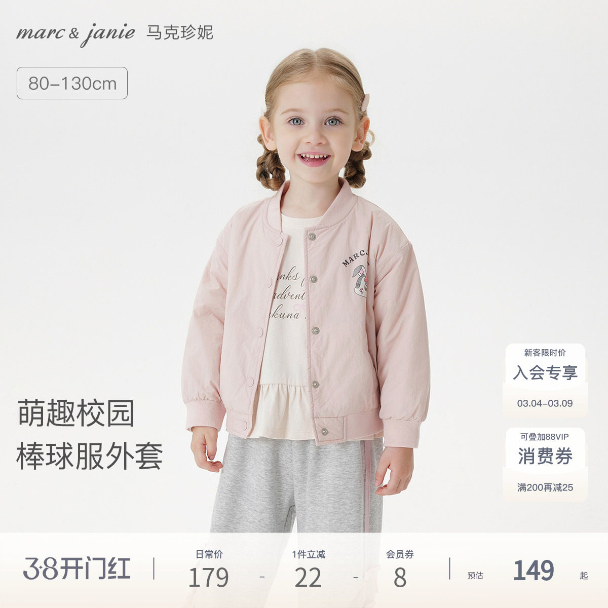 马克珍妮男女童萌趣小兔棒球服宝宝宽松外套薄棉夹克春秋装551650