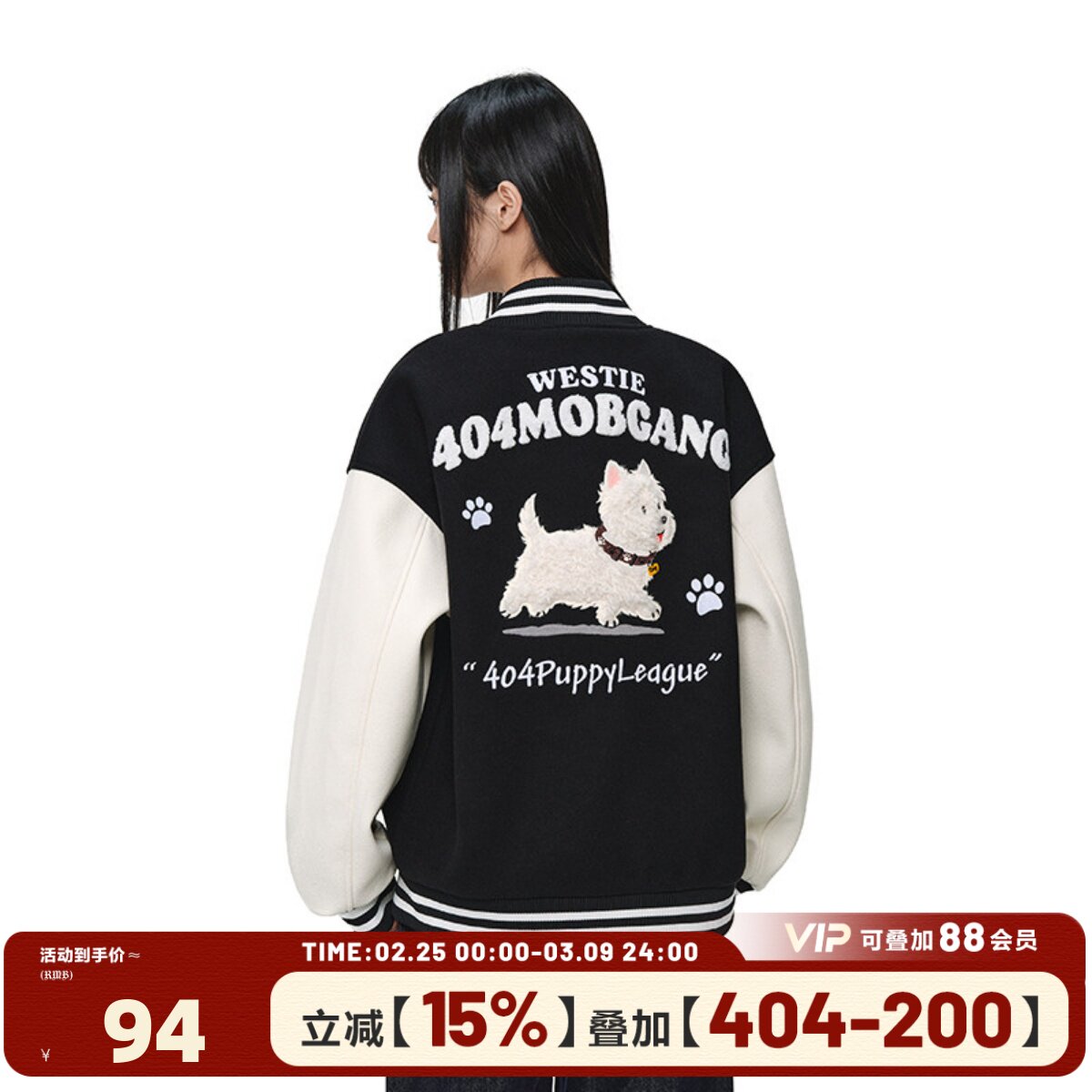 404MOB可爱毛绒小狗刺绣2025棒球服外套男女美式宽松学院设计夹克