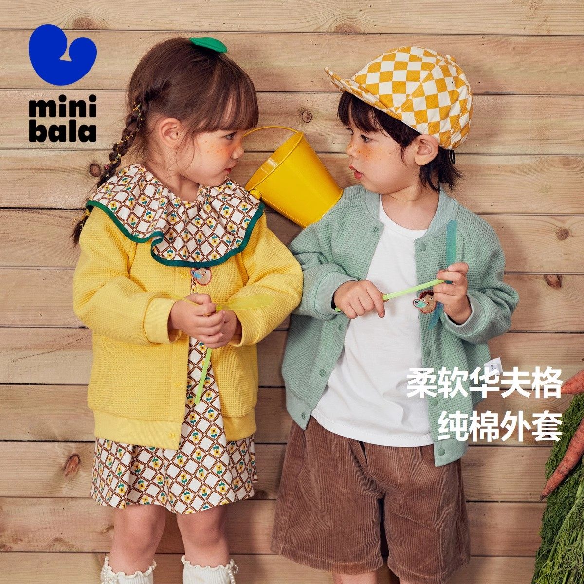 迷你巴拉巴拉秋季新款男童女童华夫格外套宝宝纯棉宽松棒球服夹克