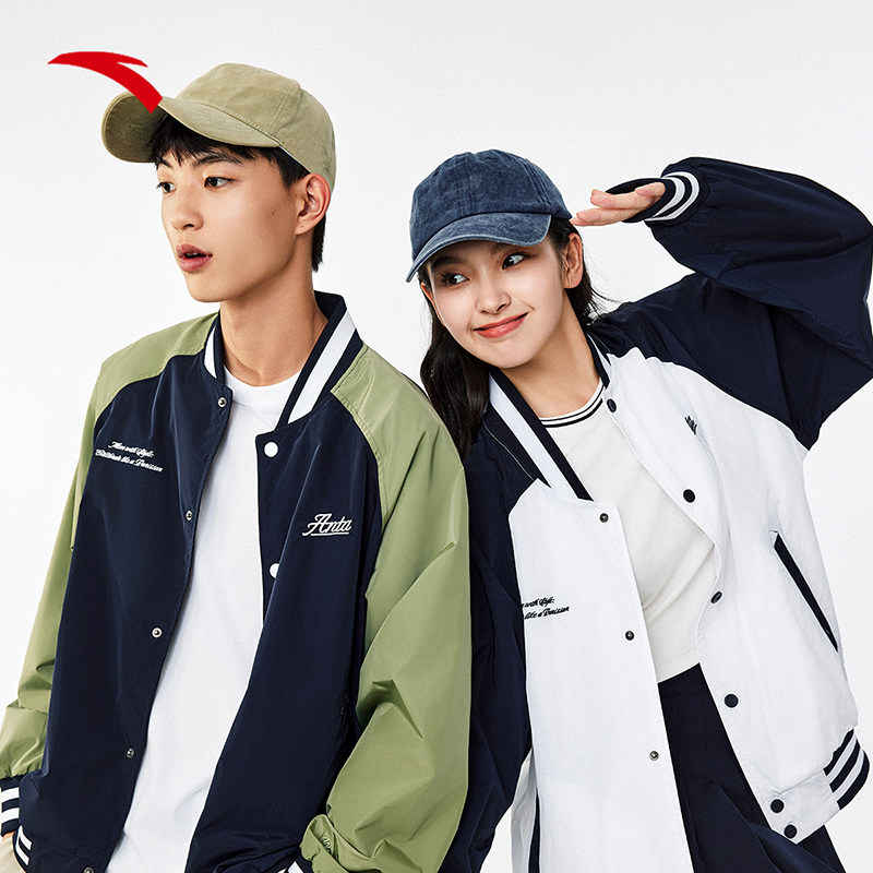 安踏外套男女同款复古单夹克学院风运动户外宽松棒球服 152438607