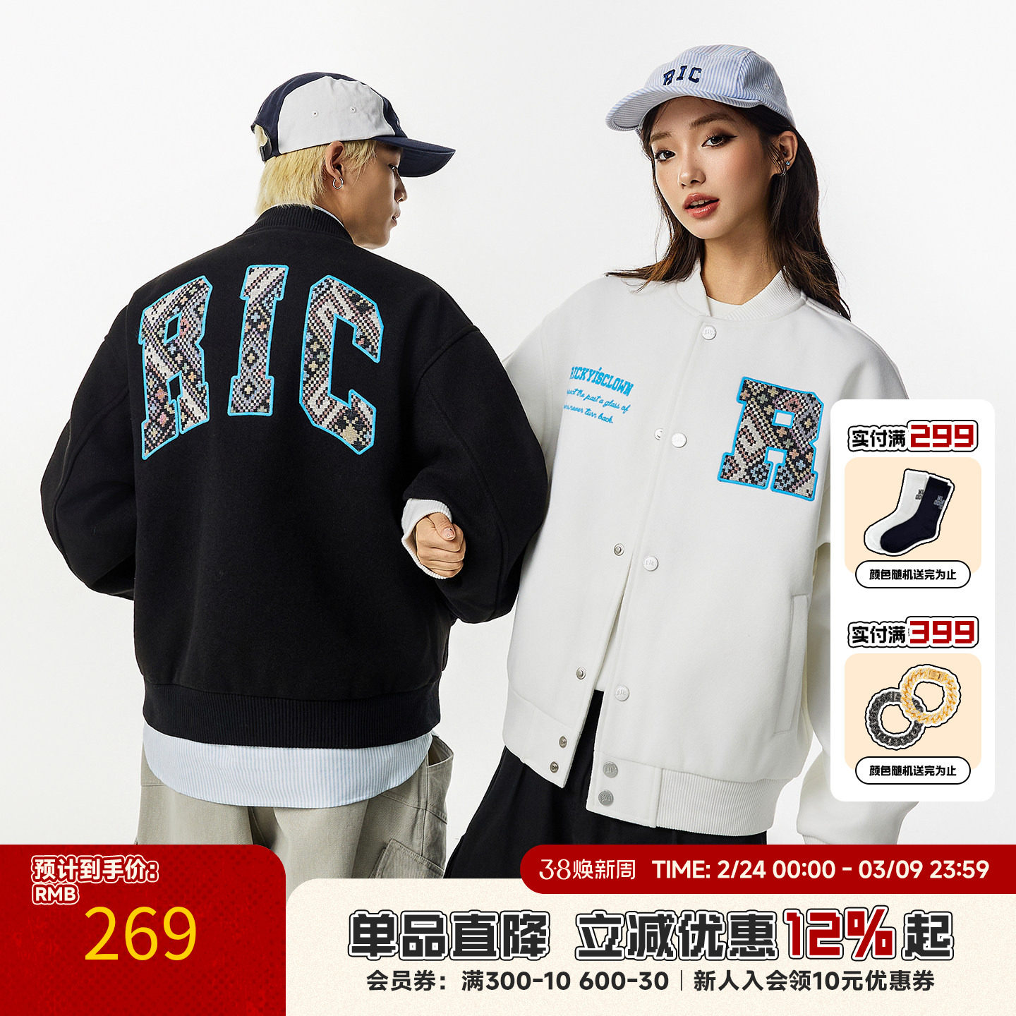 RIC民族风棒球服外套男秋季新款 潮牌宽松情侣黑色美式棒球夹克女