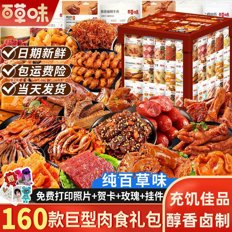 百草味零食大礼包肉食类送女友整箱充饥麻辣卤味夜宵休闲食品小吃