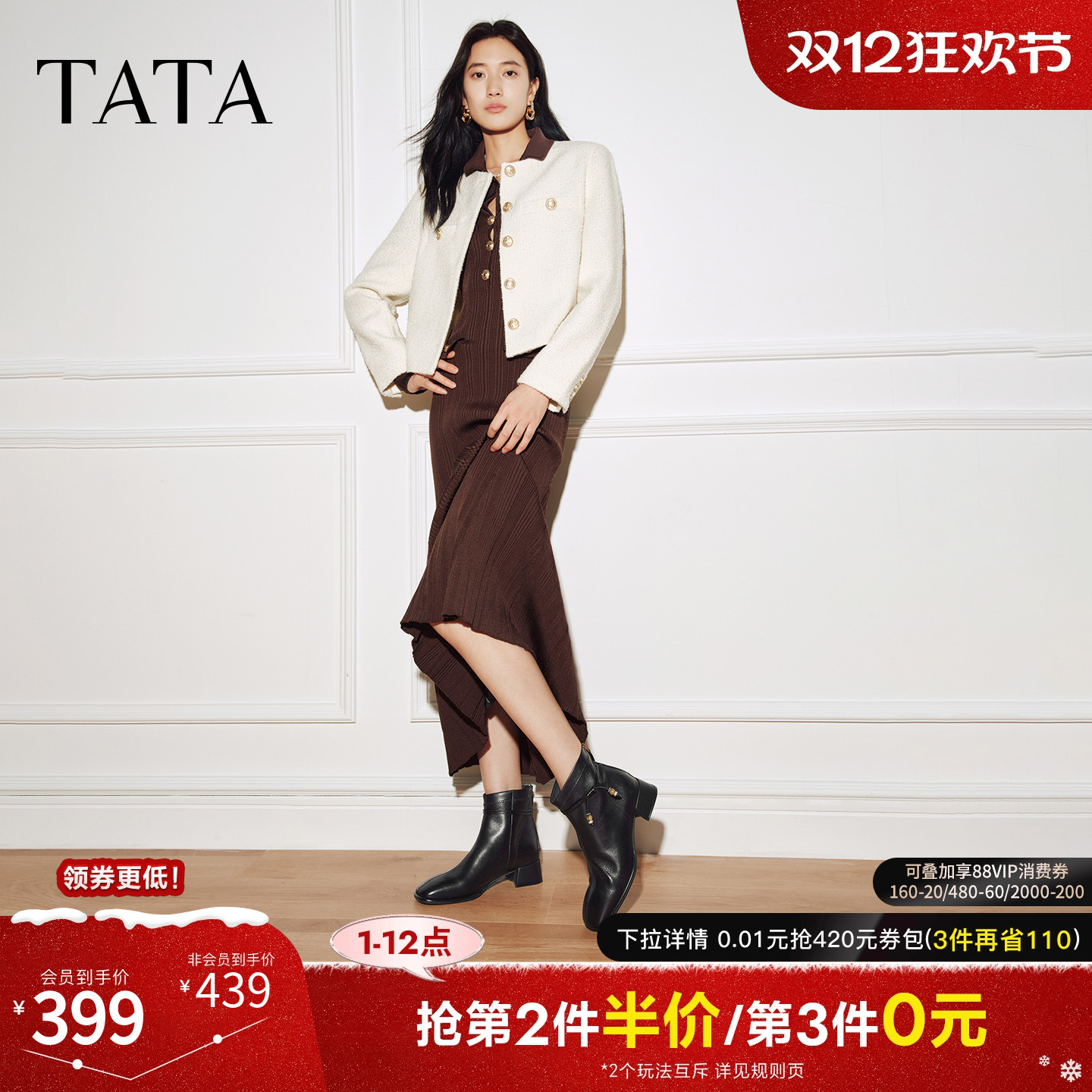 TATA他她女靴子2025冬季时装靴粗高跟羊皮中筒靴复古短靴WYX05DD5