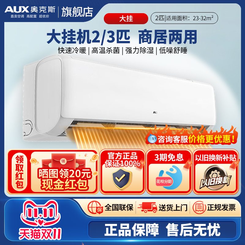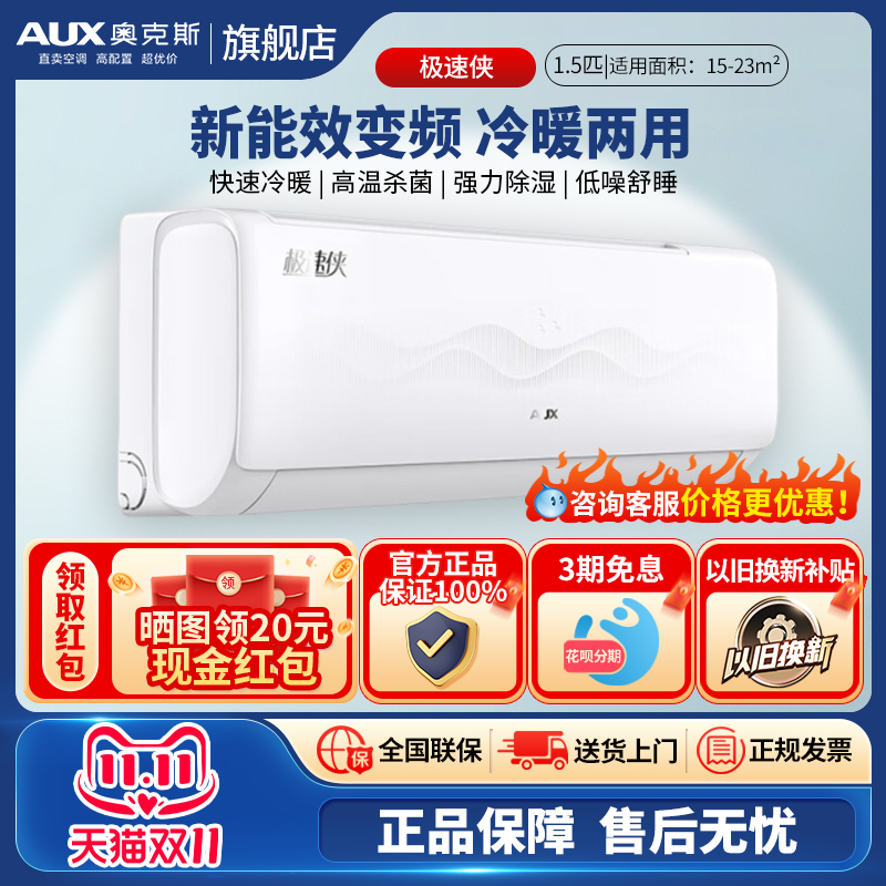 【双十一特惠】奥克斯空调大1.5匹/1p新一级变频冷暖壁挂机旗舰店