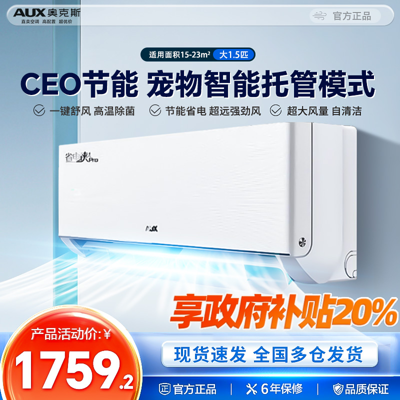 奥克斯空调挂机大1.5匹新一级冷暖省电侠Pro家用卧室智控旗舰正品