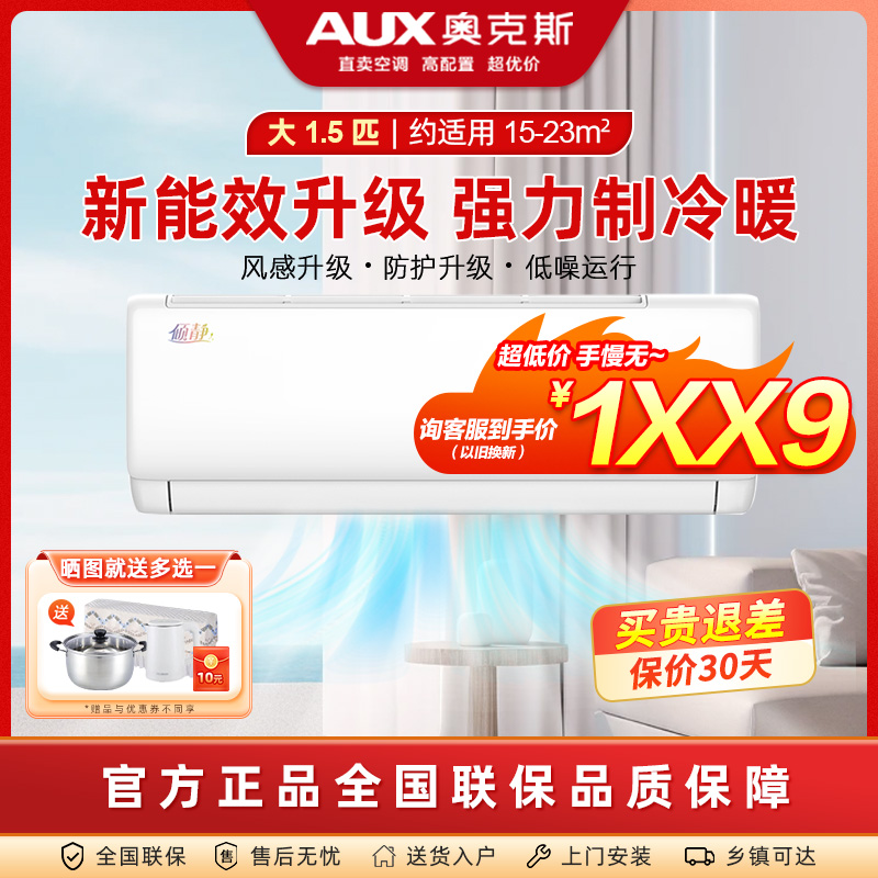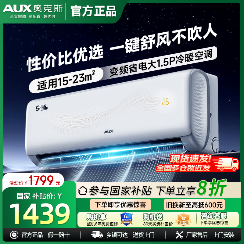 AUX/奥克斯空调大1.5匹挂机大2p变频1匹新一级能效冷暖家用正品