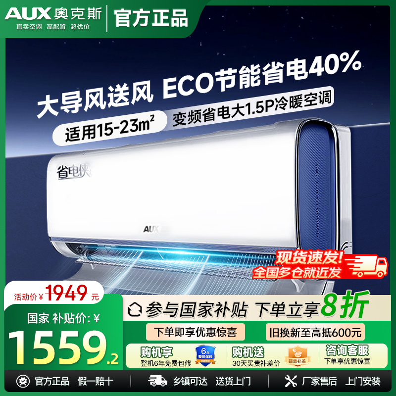 AUX/奥克斯空调大1.5匹p省电侠新一级能效变频冷暖家用挂机壁挂式