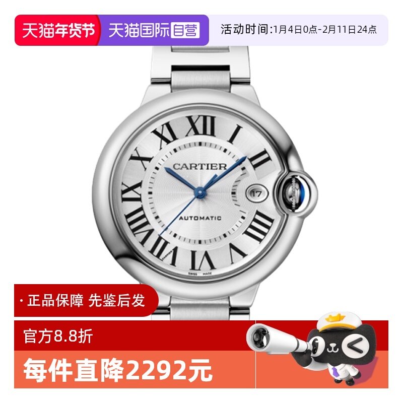 【自营】中古99新卡地亚蓝气球系列男表瑞士机械手表雕纹表盘礼物