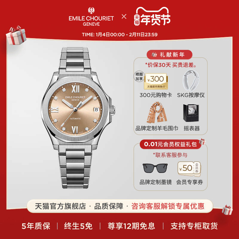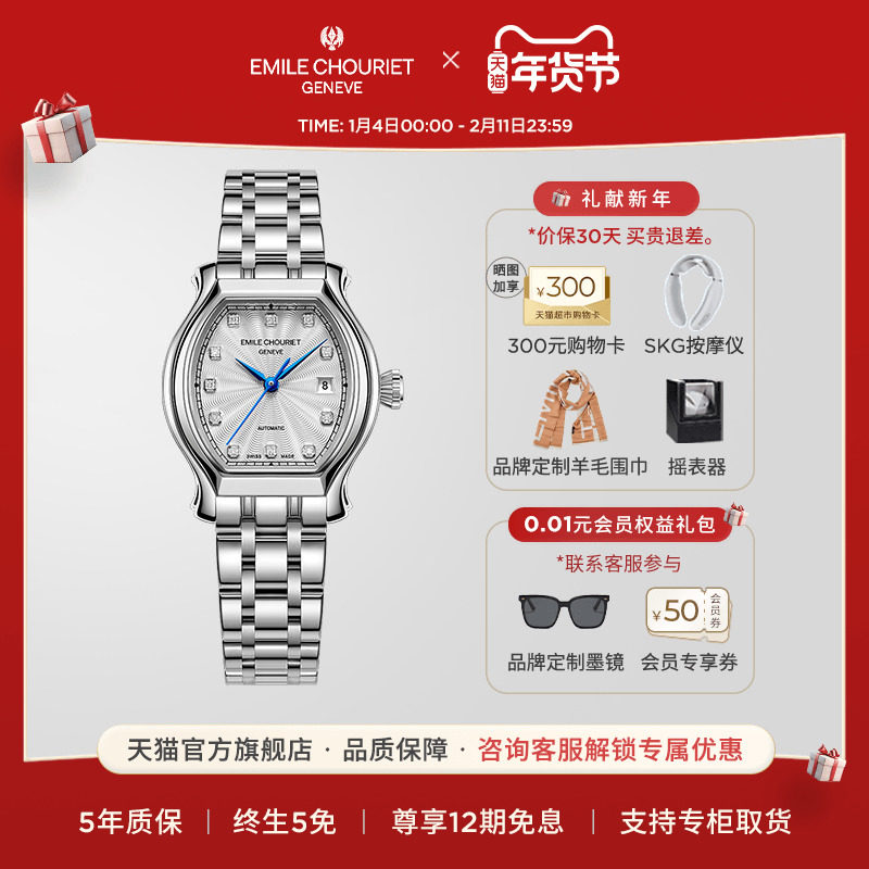 【新年礼物】艾米龙Emile Chouriet净雅系列瑞士机械手表女表