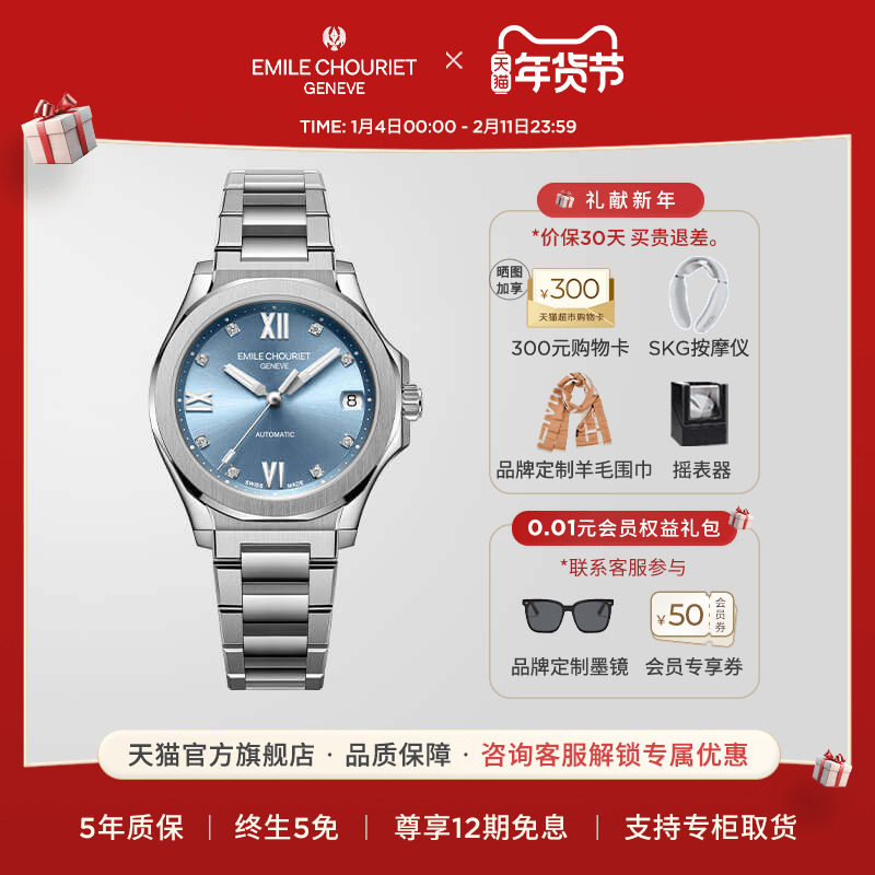 【新年礼物】艾米龙Emile Chouriet冰峰系列瑞士机械手表女表