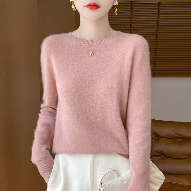 2024秋冬新款低圆领羊绒衫女baby小山羊绒修身显瘦抽条针织打衫