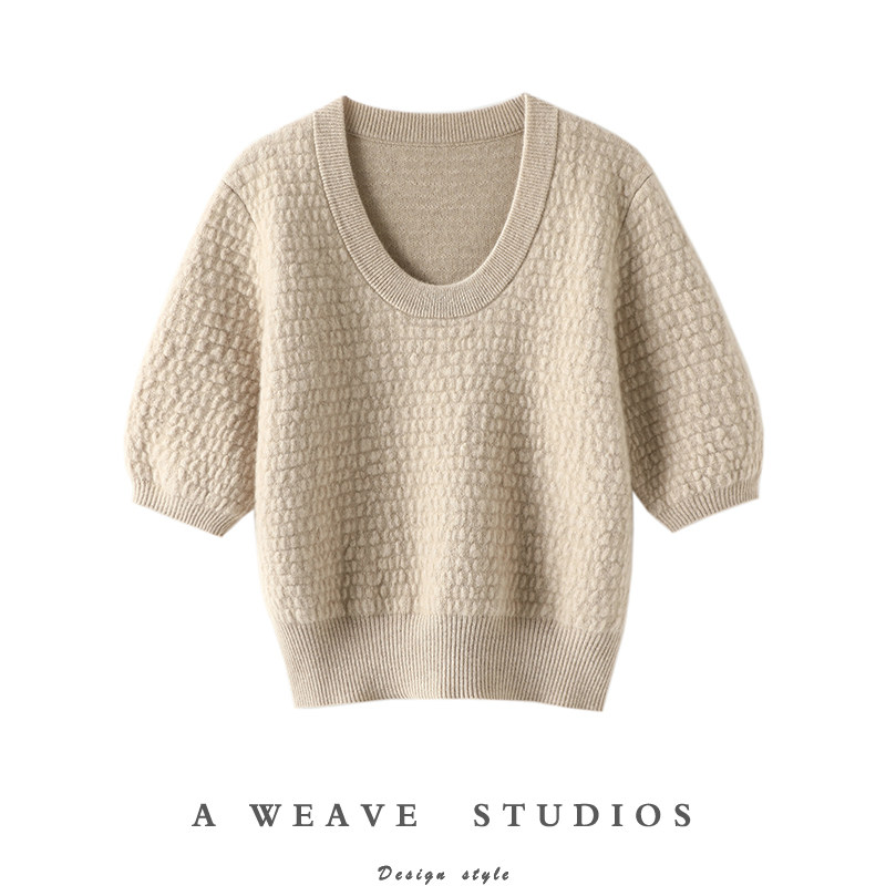 富丽华贵!加厚保暖低圆领羊绒衫女短袖纯羊绒毛衣针织衫短款宽松
