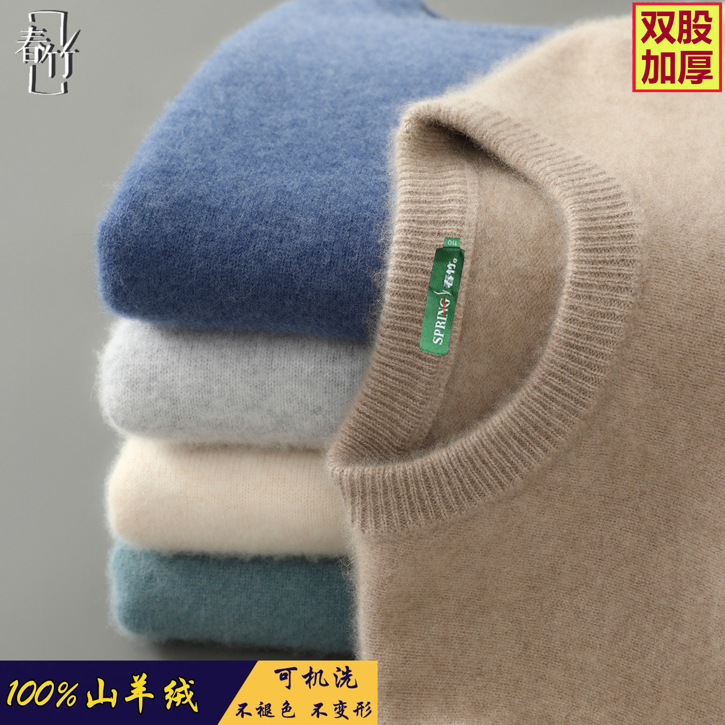 特价正品春竹羊绒衫男款中青年柔软亲肤加厚保暖低圆领毛衣打底衫