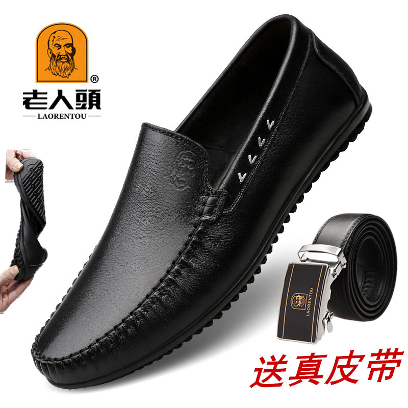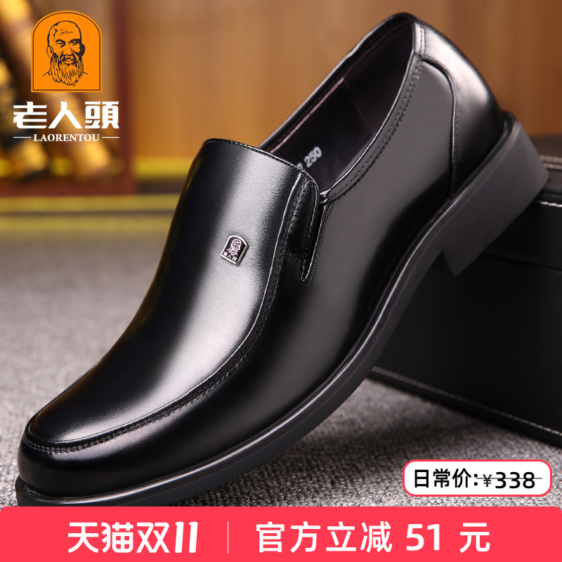 老人头商务休闲皮鞋男真皮透气秋季牛皮男士中老年爸爸鞋特大小码