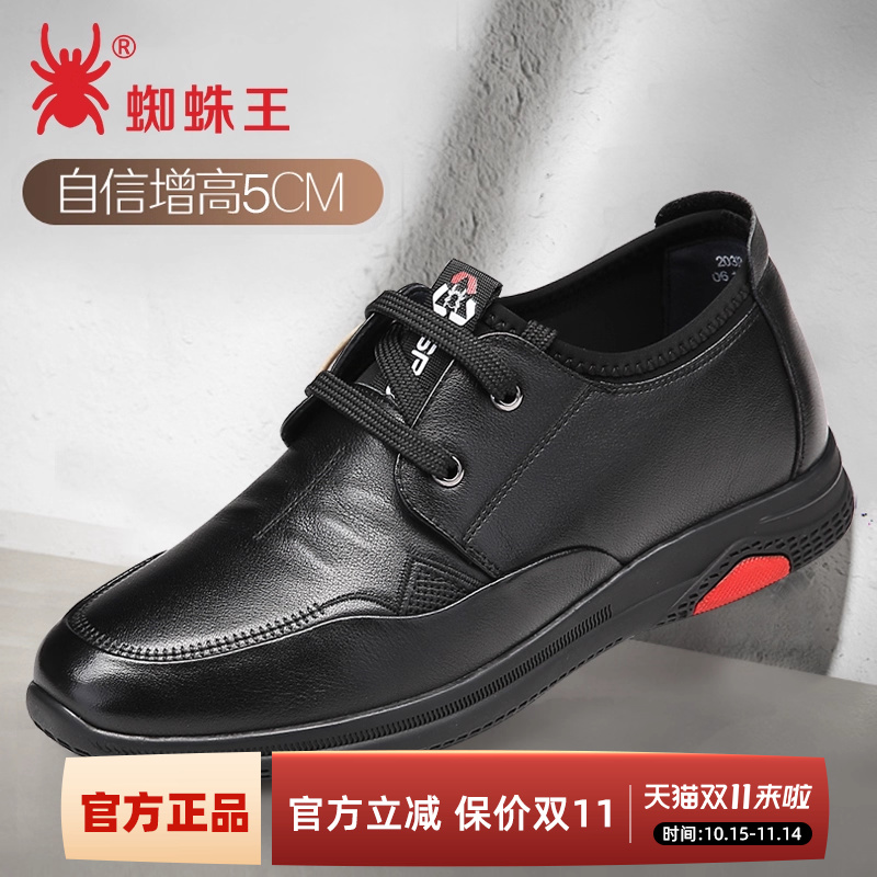 蜘蛛王男鞋内增高秋季36码真皮休闲男士皮鞋圆头小码透气增高鞋男