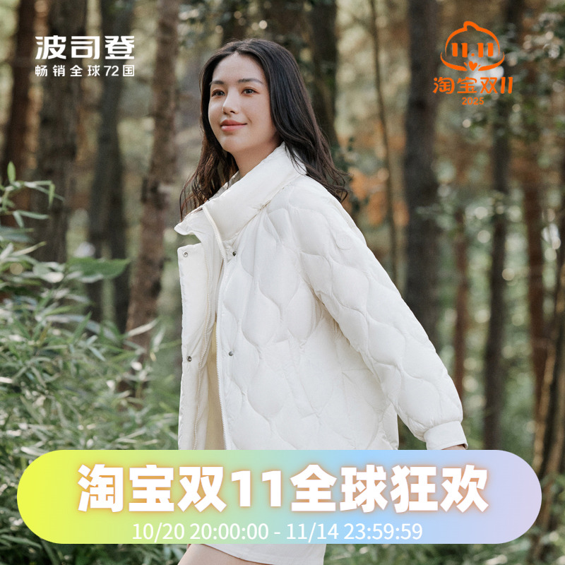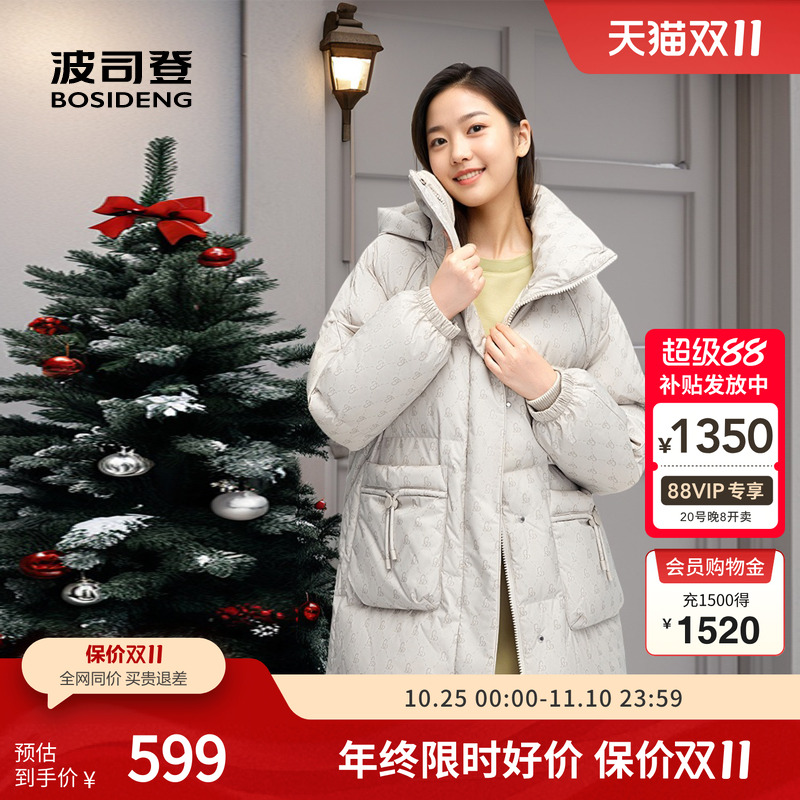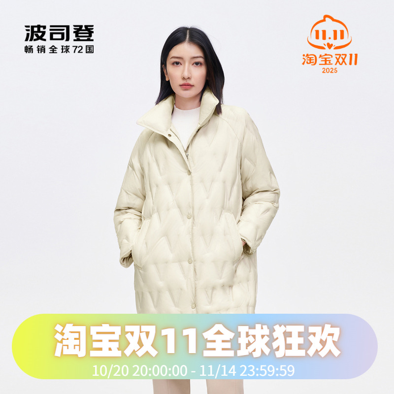 波司登2023女士鹅绒轻薄立领羽绒服宽松廓形中长款外套B30134162