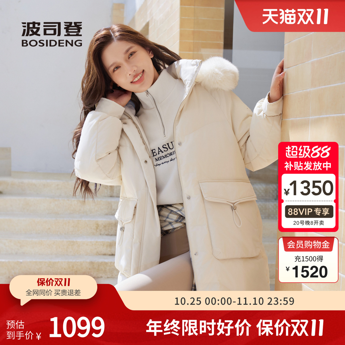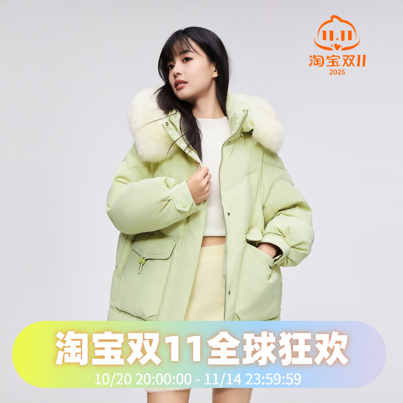 明星同款*波司登2023冬女士中长款羽绒服宽松廓形外套狐狸毛领