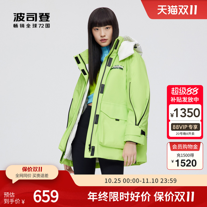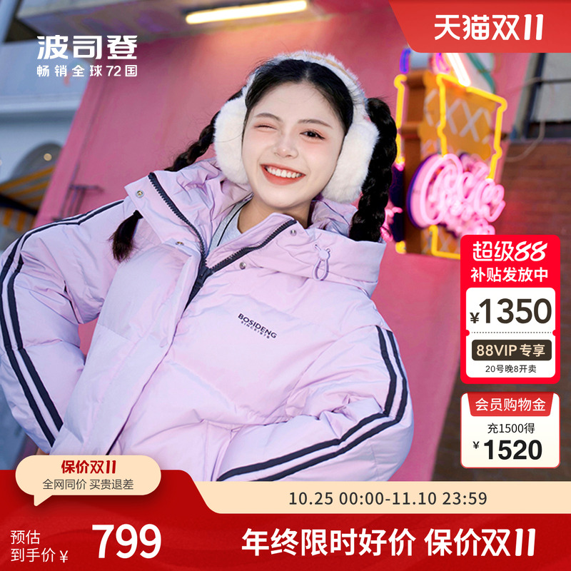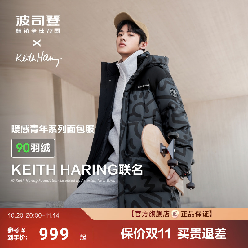 [联名款]波司登冬季新款时尚保暖连帽中长学生运动羽绒服男女同款