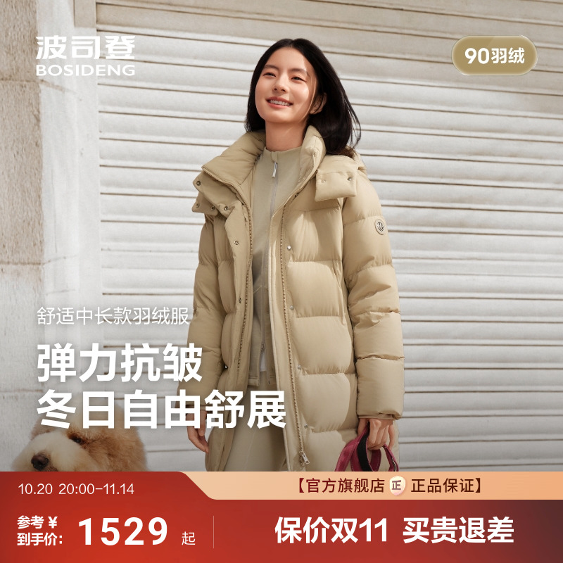 波司登2025新款冬季羽绒服女士中长款保暖亲肤抗皱舒适生活2.0