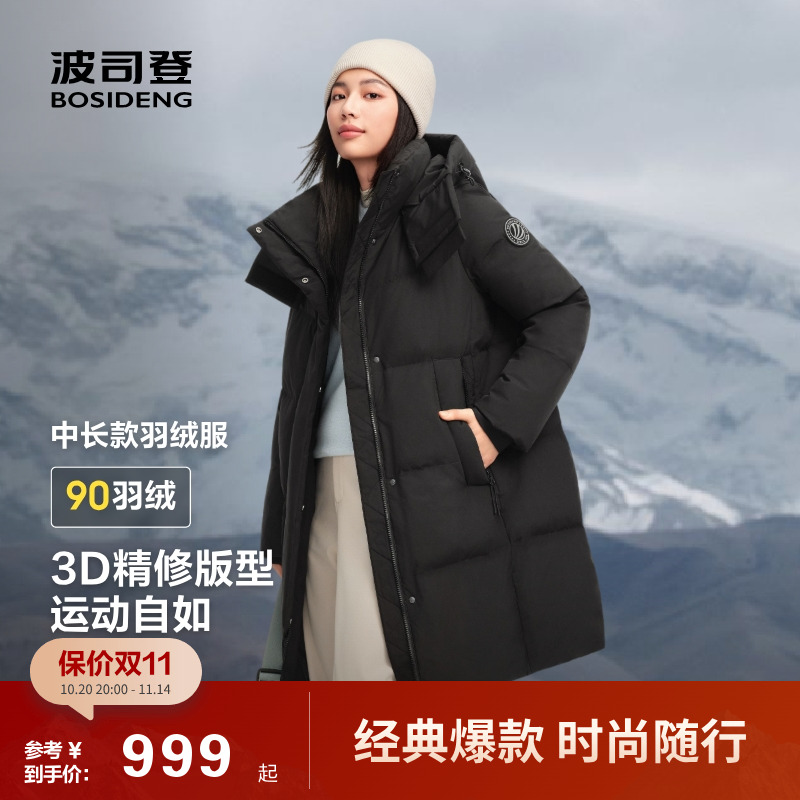 波司登2025新款羽绒服女经典都市休闲保暖加厚中长款连帽时尚百搭