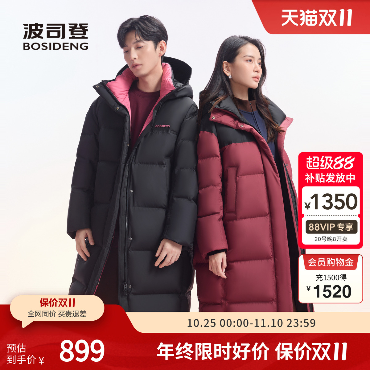波司登2024冬季男女中长款情侣同款连帽明星款潮流运动羽绒服