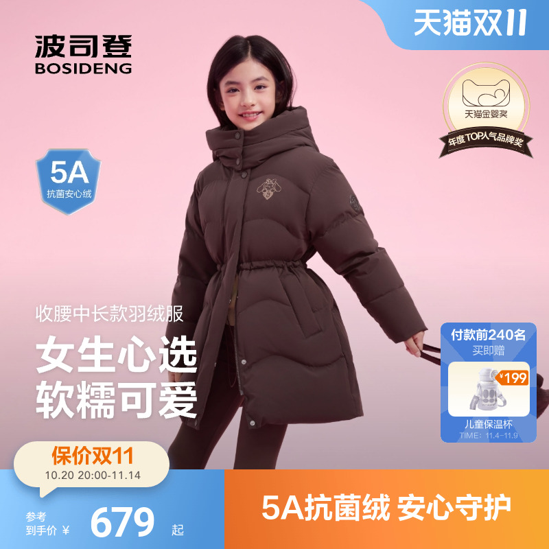 【赠玩偶包】波司登儿童绒服女童中长款收腰羽绒服舒适好打理外套