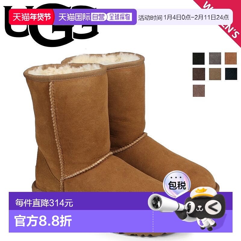 日本直邮UGG秋冬女士靴子经典休闲舒适平底圆头短筒雪地靴1016223