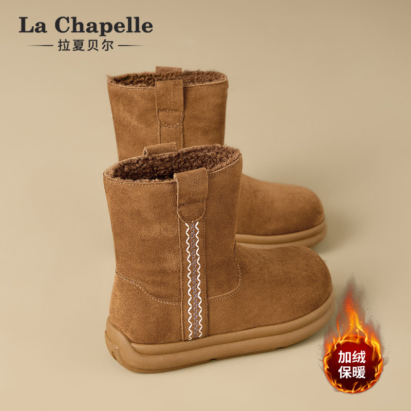 拉夏贝尔加绒加厚雪地靴女2025冬季新款棉鞋厚底增高短筒女士靴子
