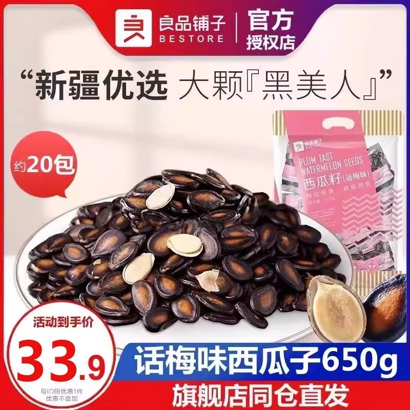 良品铺子话梅味西瓜子650g 甘草瓜子小包装办公室休闲零食炒货