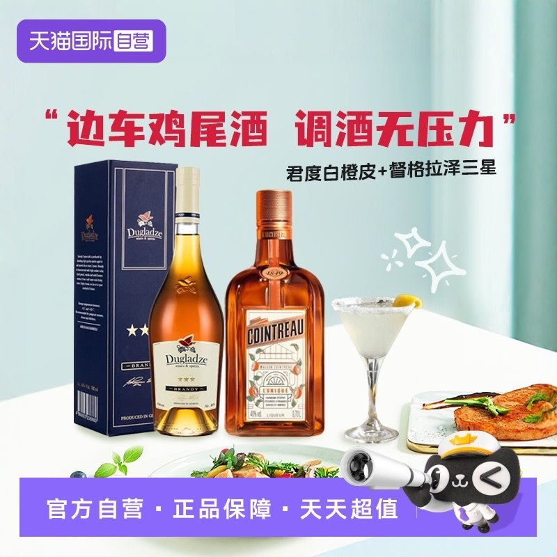 【自营】洋酒调酒基酒边车鸡尾酒套装君度力娇酒白兰地 原瓶进口