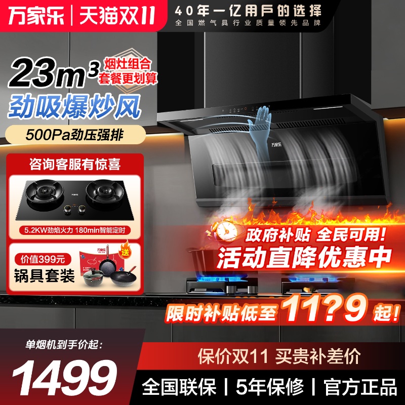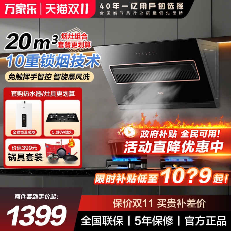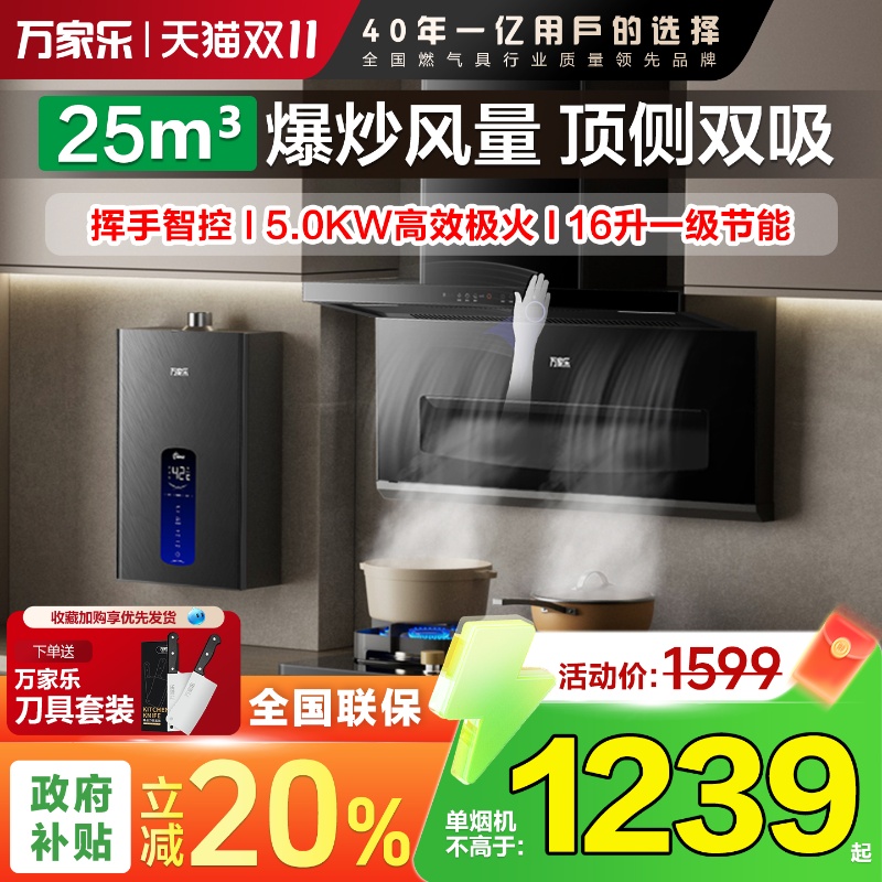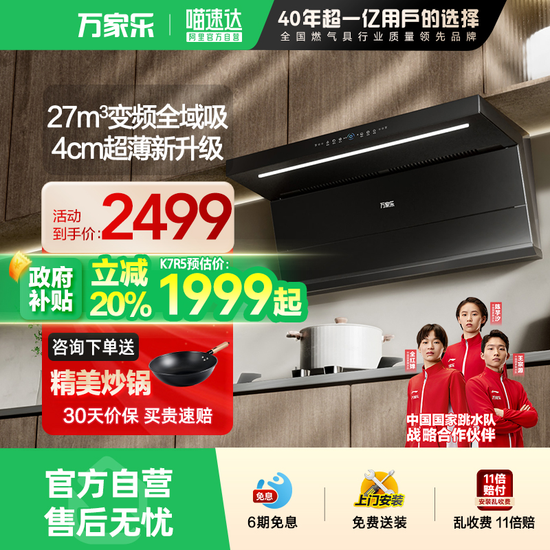 政府补贴万家乐油烟机燃气灶套装26大吸力超薄变频厨房三件套K7R3