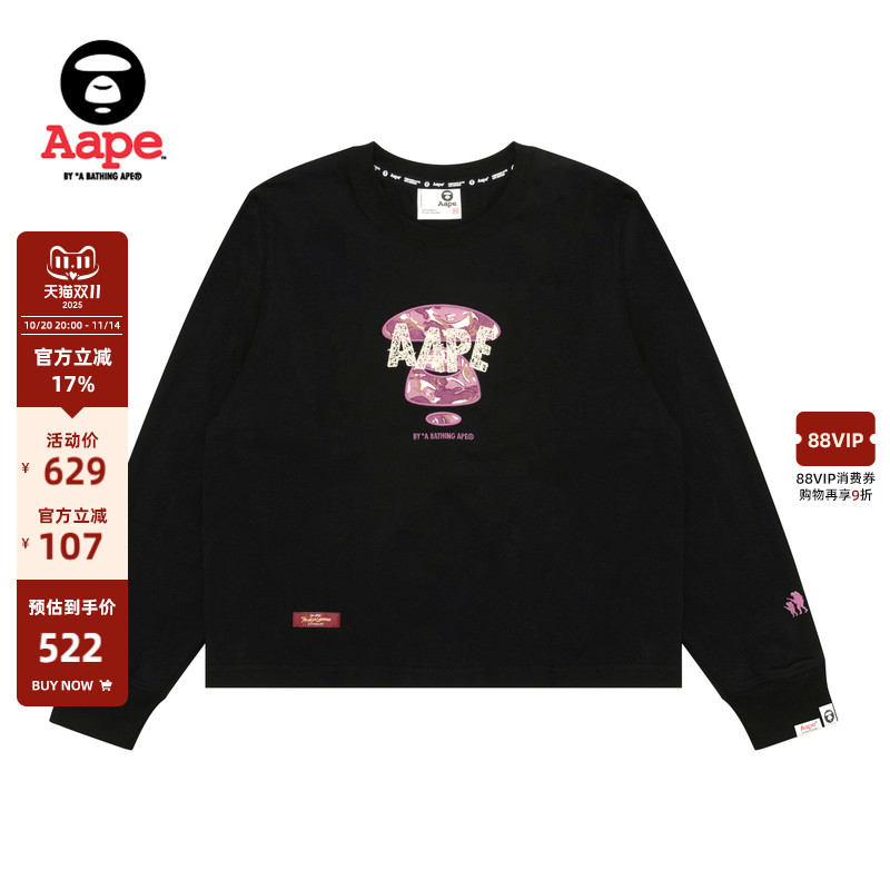 Aape旗舰店女装秋冬猿人迷彩印花休闲潮流长袖T恤1781XXP