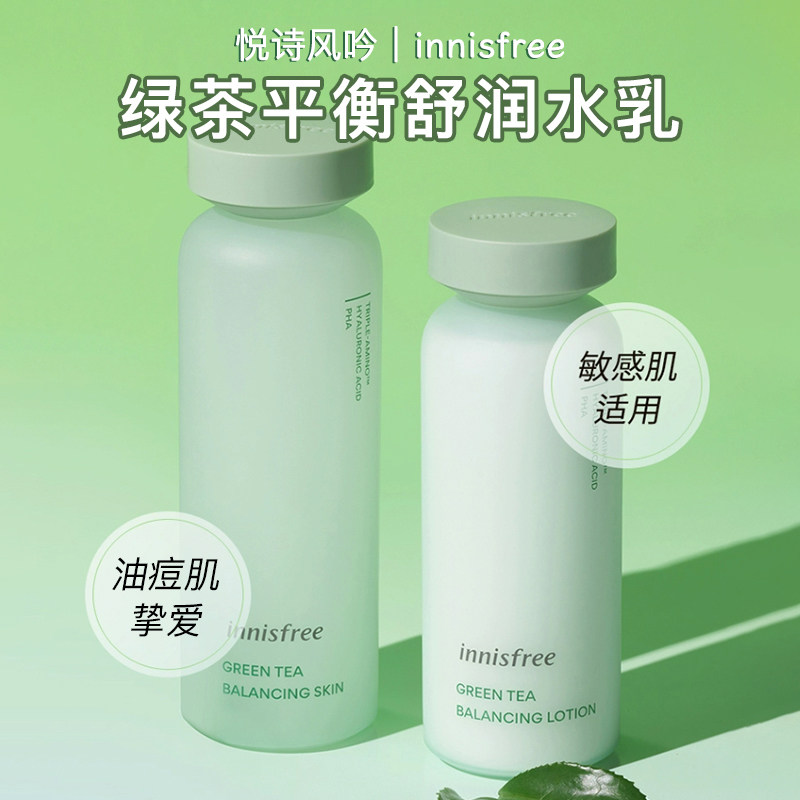 Innisfree悦诗风吟绿茶平衡水乳套装补水控油补水保湿秋冬不油腻