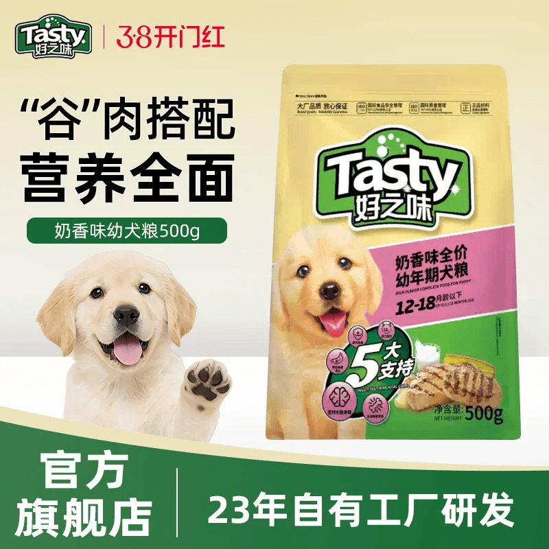 好之味幼犬粮500g奶香味狗粮试吃装小中大型犬主食金毛柴犬狗通用