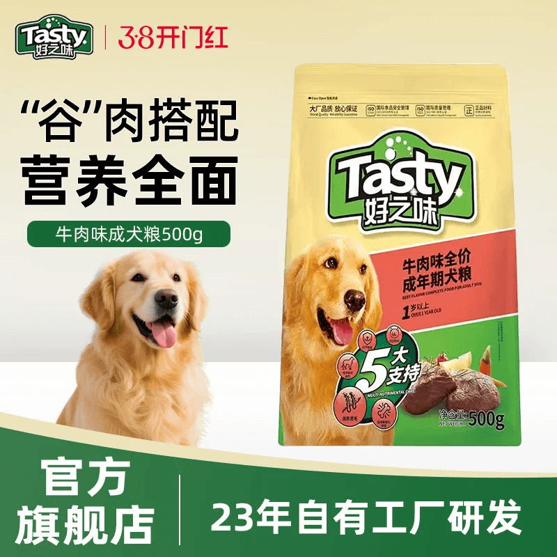 好之味500g成犬粮牛肉味狗粮天然金毛犬全营养宠物狗高龄犬高蛋白