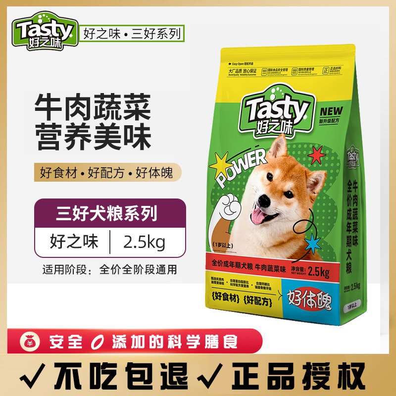 好之味狗粮2.5kg三好牛肉味成年期犬粮泰迪金毛大小型犬5斤通用型