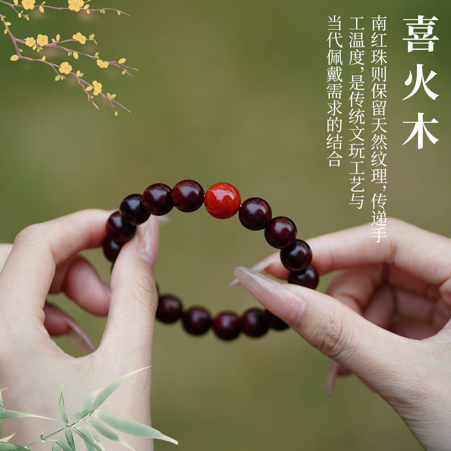 喜木火天然小叶紫檀手串女士双圈叠戴南红玛瑙转运珠木质佛珠手链