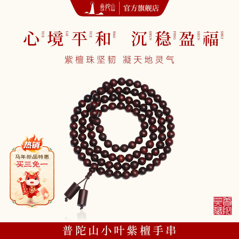 【普陀山旗舰】2026新款小叶紫檀108颗佛珠手串男女文玩老料手链