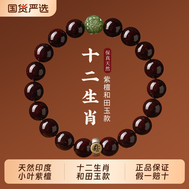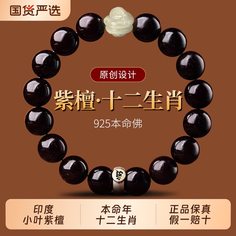 正宗小叶紫檀手串十二生肖本命佛檀木佛珠文玩手链男女款情侣送礼