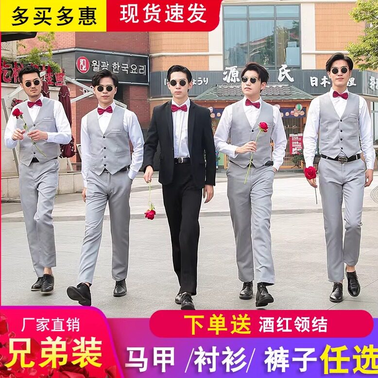 伴郎服西式兄弟装伴郎团礼服结婚西服套装男士衬衫马甲三件套冬季