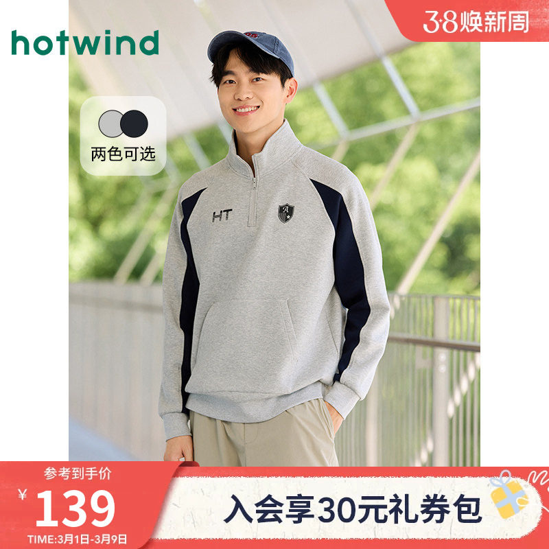 热风男士假两件卫衣2025年秋季休闲半开领时尚套头卫衣宽松有型